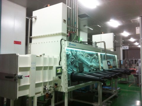 作为应用于特殊行业的锂电池专用手套箱必须结合锂电研究和生产时产生的特色环境来设计制作,我公司设计的锂电池手套箱结合多年锂电行业的丰富经验并通过不断的探索完善解决了锂电池研究和生产产生的腐蚀性气体以及泄漏问题。如玻璃的防腐,传感器的防腐,橡胶的防腐及防老化,锂电池生产线进气接头及其他零部件的防腐选型等问题。锂电池生产线还配备了专业的溶剂吸附系统。减小腐蚀气体的破坏性,增加设备各部件的使用寿命。